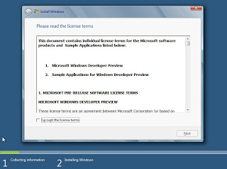 7. Kita bisa memilih opsi apakah ingin meng-upgrade windows kita ke windows 8 Edisi Developer atau ingin melakukan fresh install, Namun saya asumsikan lebih baik fresh install aja, Pilih Custom (Advanced) untuk melanjutkan fresh install.